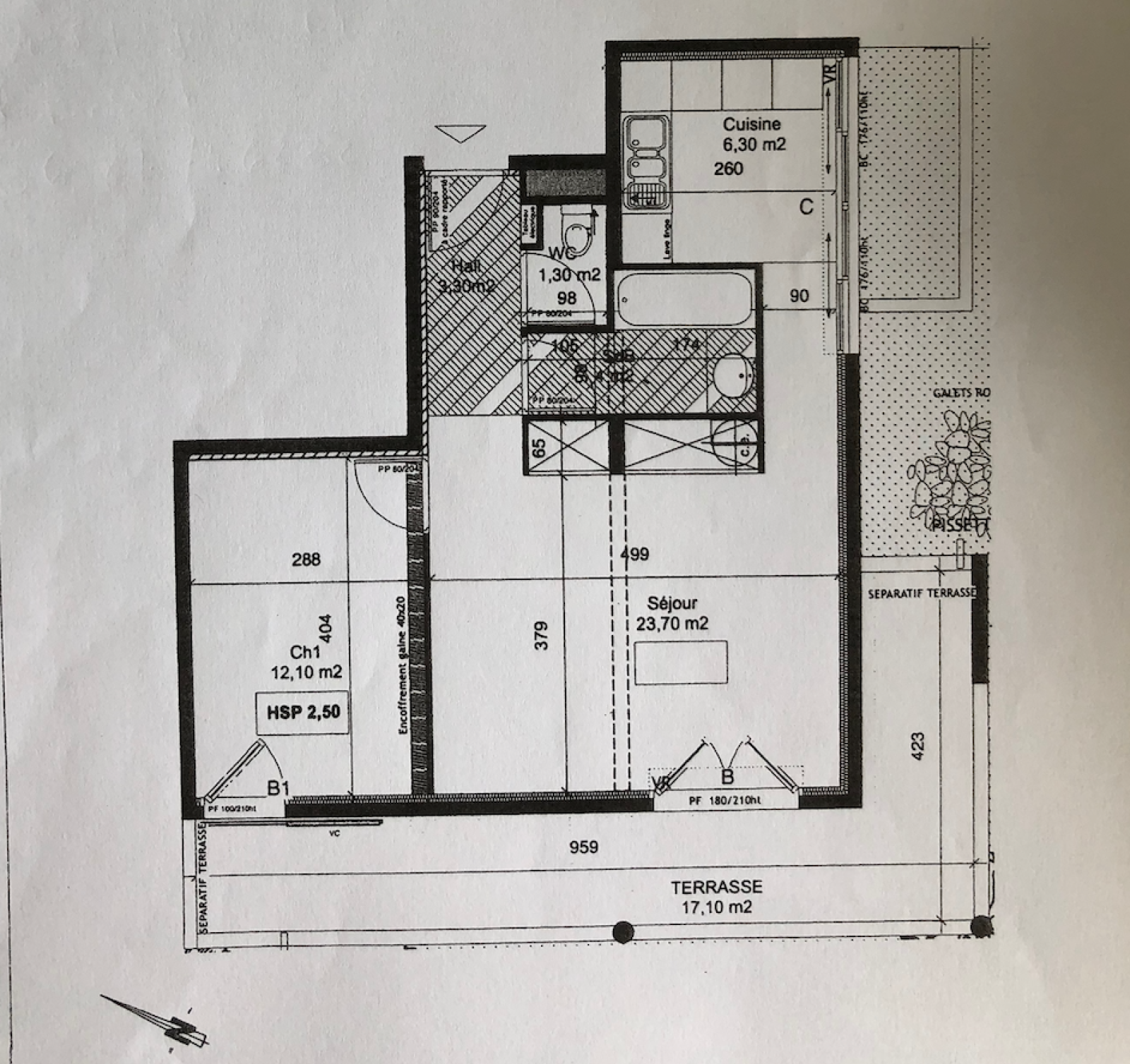 Provisions sur charges avec régularisation annuelle de 75 €/mois (copropriété + chauffage + climatisation + eau froide + taxe ordures ménagères)