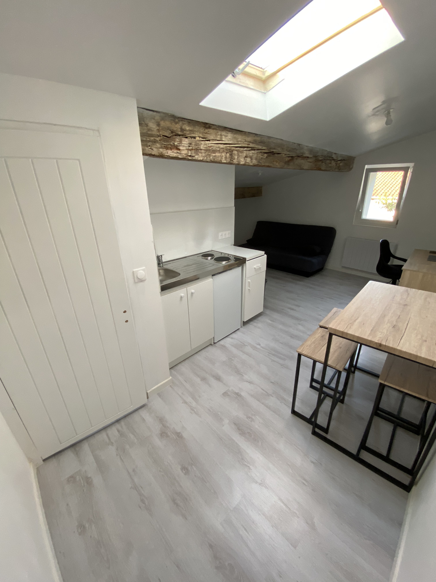 Il se compose de la pièce principale avec kitchenette et d’une salle d’eau avec wc.