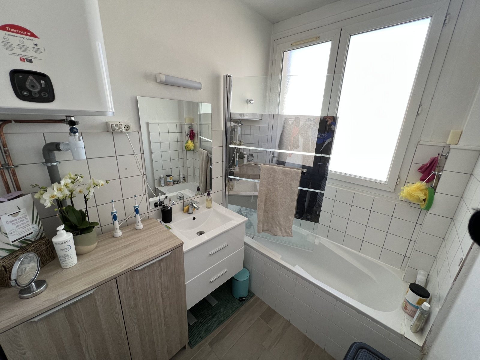 Le système de chauffage est électrique, et la production d’eau chaude est au gaz. Vous ne dépendez pas de la copropriété pour vos consommations, tout est individuel.