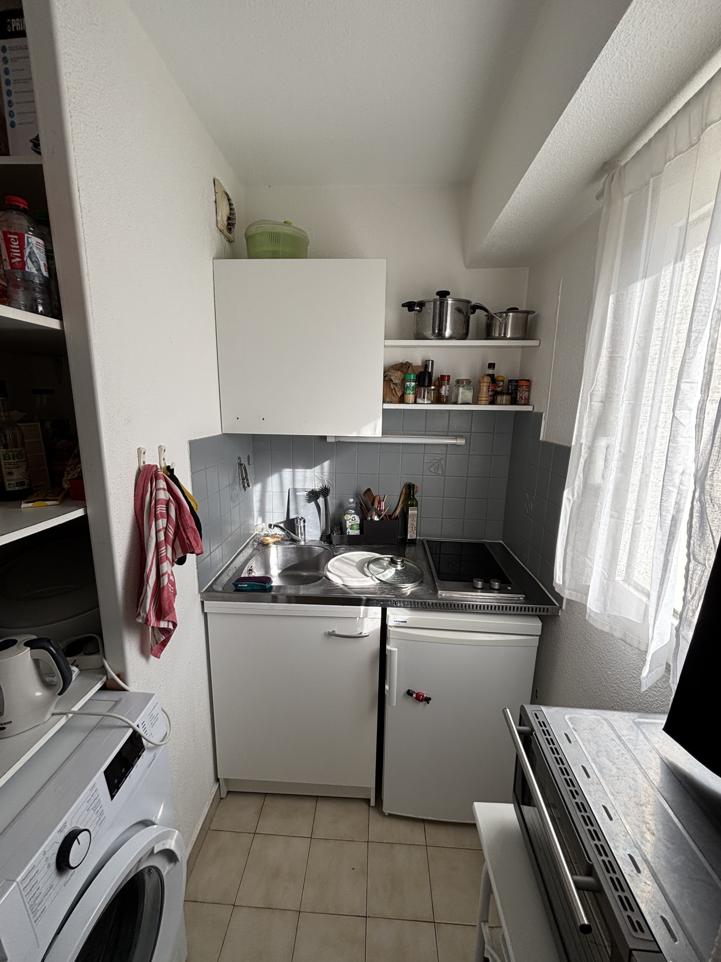 Il dispose d’une entrée avec placard, d’un beau séjour avec coin cuisine à part et avec sa fenêtre, d’une salle de bain avec wc.